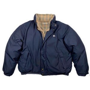 Condition: Pre-owned in good condition with a few signs of wear. It has no tears and a small but noticeable stain on the blue reversible side near the bottom stomach area. It also has some yellowing on the collar which can probably be removed with dry cleaning. It’s a very thick and warm jacket, I’ve gotten a lot of compliments on it. Please see photos for more details. Message us with any questions you may have.