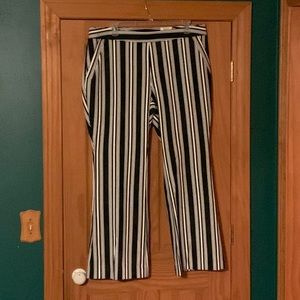 Brand new, pull on, black and white striped pants. Four decorative pockets, bootleg, mid rise.