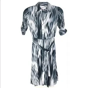 Nanette Lepore button front dress Midi collar belt pockets 1/2 tab sleeve Size 2