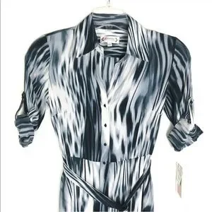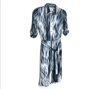 Nanette Lepore button front dress Midi collar belt pockets 1/2 tab sleeve