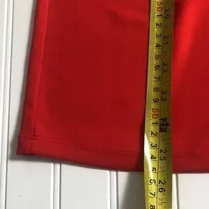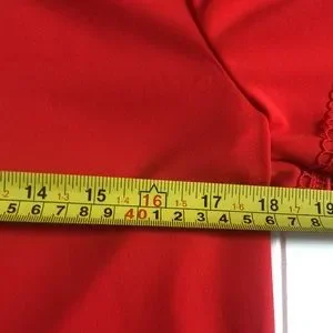 Red Karl Lagerfeld smock blouse with 3/4 length bell sleeves. Gently used condition with key hole enclosure at the nape of the neck.