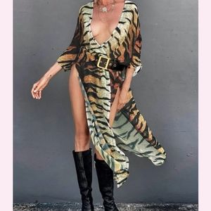 SALE! Last One New Tiger Print Sheer Swim Cover Up Kimono Duster Robe Cardigan