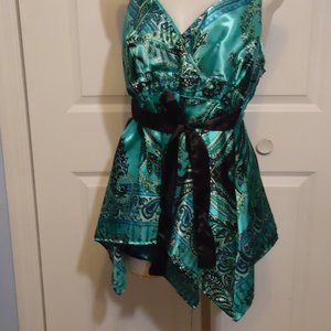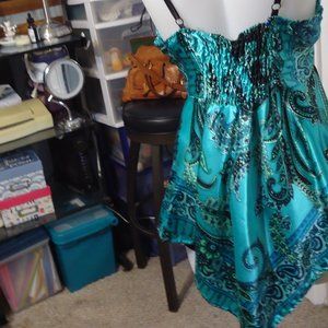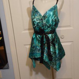 Fabulous DOTS, adjustable spaghettis strap, tie front or back, handkerchief hem baby doll top. Like new, excellent condition, size 1X