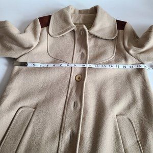 100% wool beautiful vintage 1970s 1980s beige coat with brown details.