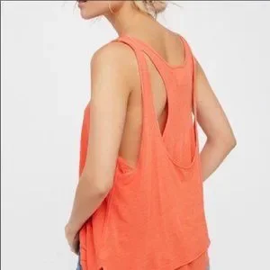 We The Free by Free People - Karmen double layered racerback tank top. An orange-y coral color in a lightweight fabric. Great for yoga, workouts, gym, or casual summer wear. Scoop neck. Size medium.