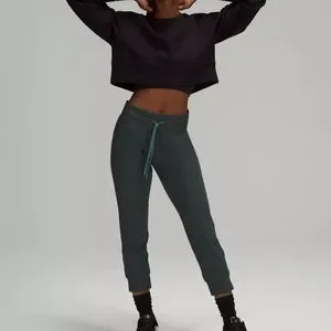 These soft, sweat-wicking crops have you covered for warming up, cooling down & chilling out. Designed for on the move. Light & soft. Color: Heathered Tidewater Teal/Black