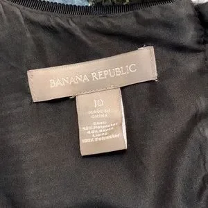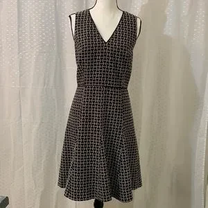 Black and white, textured dress. Fit and flare, sleeveless, V-neck, hidden back zipper-clasp. Lined. 56% polyester, 44% rayon. EUC