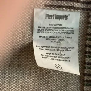Like new jute cotton blend runner in tan color with brown and dark sage green motifs