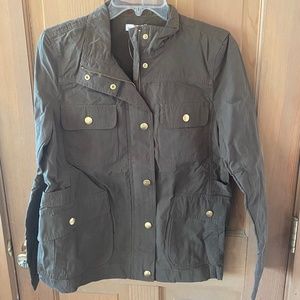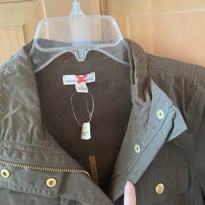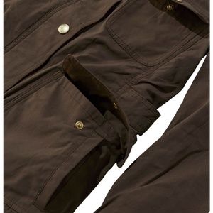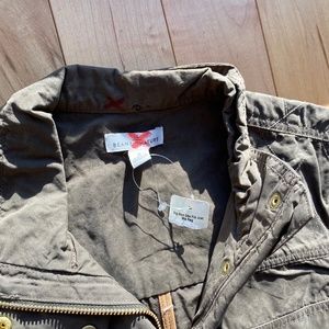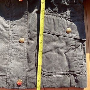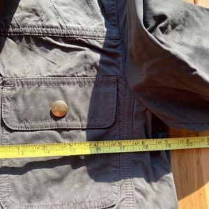 The classic look of a field jacket, only better with a softer feel and stylish details. Quilted detail at shoulders and back yoke. Adjustable side tabs provide great shape. Four front flap and two side pockets. Softly shapes the body. Falls at hip. Tag marked to prevent return to store.