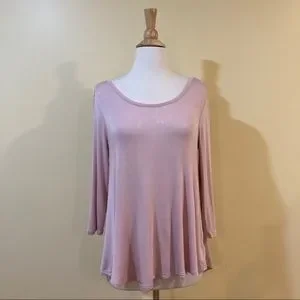 💥 CLEARANCE Lace Up Back 3/4 Sleeve Drapey High Low Top Blush
