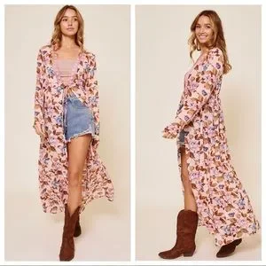 Kourtney Floral Maxi Length Kimono Duster Dress