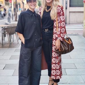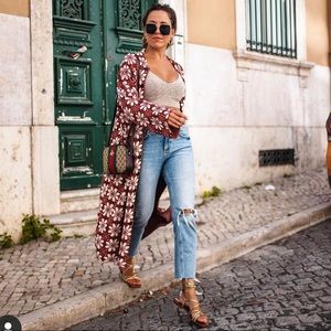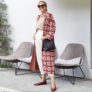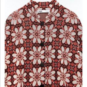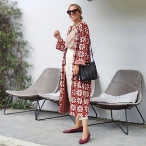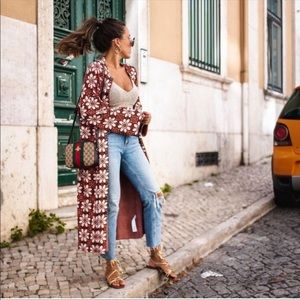 Zara floral vintage boho 60s 70s mod inspired all over floral print longline jacquard knit maxi coat or “coatigan”