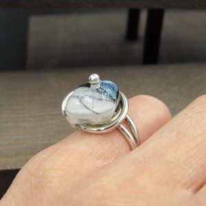Size 5.5 Sterling Silver Handmade Wire Wrapped Glass Band Ring Vintage