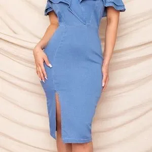Hi, It comes on two colors light and dark blue. It’s very stretchy? If you like to show your curves very well I would recommend you the Medium size, but if you would like to see it like on the model I recommend you size Large