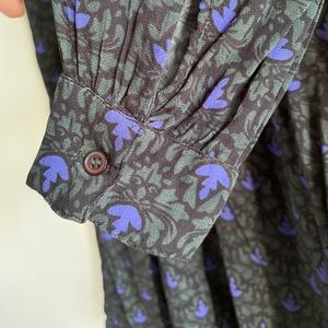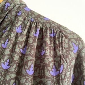 Comes with pockets, has lining and a button up collar. Has gathers at waist and back. Very chic.