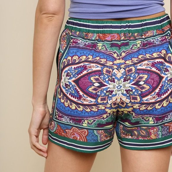Style tags: scarf print, beach, vacation, resort, cute shorts, multicolor, pattern, summer