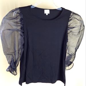NWT Ava James Balloon Sleeve Top Size Medium Black