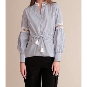 NEW HAUTE HIPPIE gaby tie waist striped top in blue white stripe