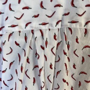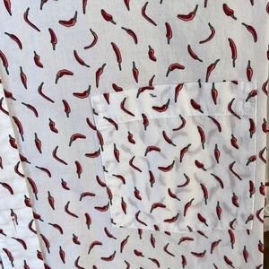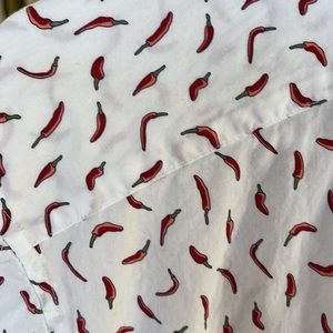 Fun, whimsical chili pepper shirt. Pattern is small and classic, no stains or flaws great condition, cotton shirt