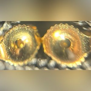 @poshmel888 Posted! 🪅☘️🪅I took the closeups through my loop :) You’ll see the 14K stamped on the pendant, earrings, chain and the 585 ( which also means 14k) on the posts. Poshmark also authenticates anything $500 and above- along with free shipping 😀 Let me know what you think 💚