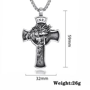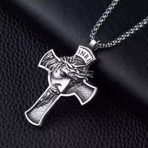 Vintage Stainless Steel Jesus Cross Pendant Necklace