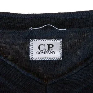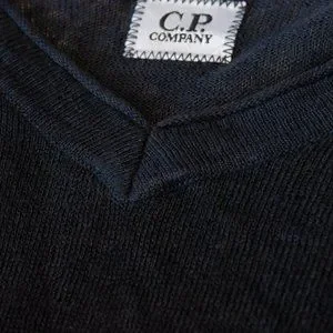 CP Company Gray Linen V-Neck Sweater Large