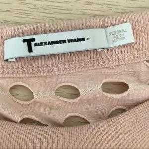 T Alexander Wang Fitted Tank Dress In Light Blush Pink combines urban design with feminine appeal in a stretchy, body-hugging midi with perforated mesh-like overlay showing subtle peeks of skin in a casual, yet totally polished style. Self: 64% poly 33% viscose 3% elastane Contrast: 65% poly 35% viscose. Dry clean. Approx measurements laying flat: chest - 15.5”, length - 44”. Gently worn with no holes or stains