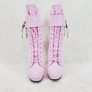 Sultry 1023 Baby Pink Patent 6" Heel 3 Piece Cuff High Heel Ankle Boots