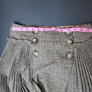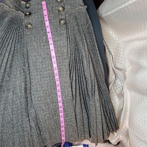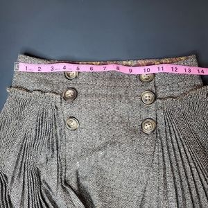Dolce & Gabbana Pleated Midi Skirt. High Waisted. Wrap, Button Front. Grey with small pattern, photo's included. Size 24/38. Gently used. Measurements taken layed FLAT. Waist - 13 inches, Length - 26 inches. Please ask any questions.