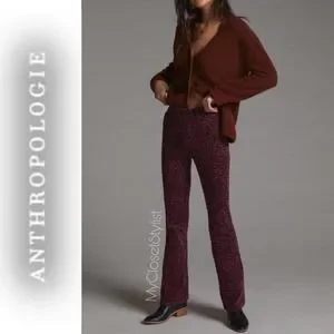 Pilcro the Icon Flare Corduroy Festival Pants 26 NWT $140 Anthropologie BOHO new cords pink black leopard ocelot flare jeans
