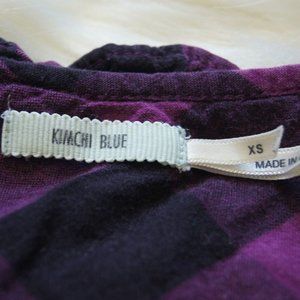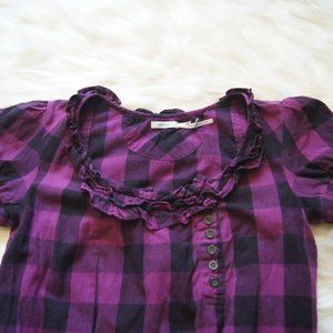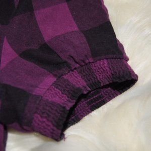 Kimchi Blue Plaid Ruffled Elastic Blouse Shirt Top XS Cap Sleeve Women's