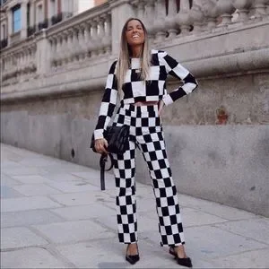 New with tags Zara black and white checkerboard checkered buffalo plaid pants. Blogger fave. Selling matching crop top in separate listing