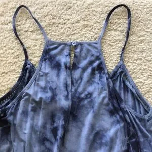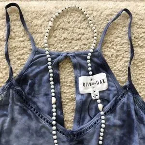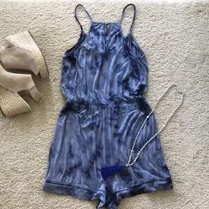 Olive & Oak Willow Romper in Vintage Denim. Super cute wardrobe staple! Slight V neck. Spaghetti straps. Racerback with keyhole button closure at the back of the neck. Elastic stretch waist. Crochet detail. Laying flat approx 33.5” shoulder to hem, approx 16” pit to pit. Inseam approx 2.5”. 95 rayon 5 spandex. Size S. NWT. #1479