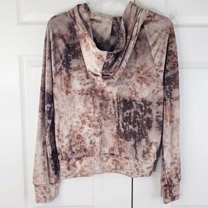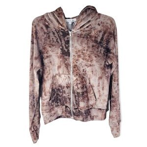 Red Haute Revolve Luxury Loungewear Velvet Watercolor Full Zip Hoodie in Sepia S