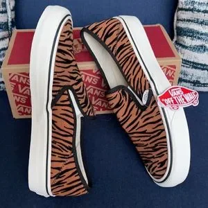 New in the box authentic women’s Vans Slip-On Sf Animal Stripes Black Marshmallow sneakers