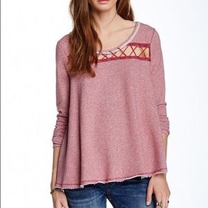 NWOT Free People Laced Cutout Striped Long Sleeve Top / Sweatshirt