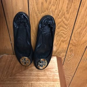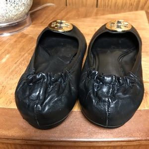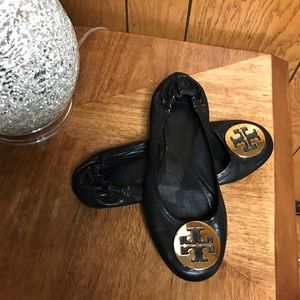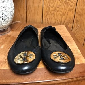 Tory Burch Reva Leather Ballet Flats 8-M Black