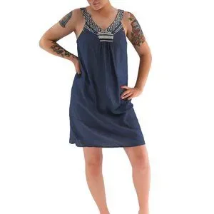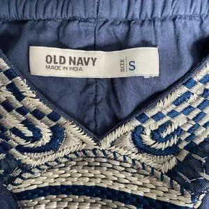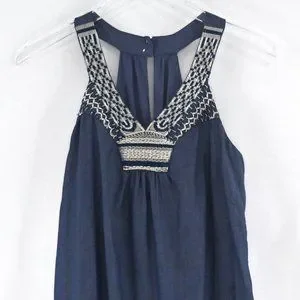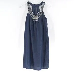 OLD NAVY Blue 100% Cotton Chambray Halter Embroidered Detail Dress.