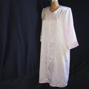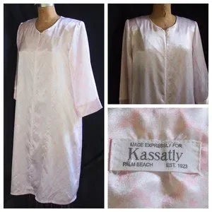 vtg KASSATLY Palm Beach Pink Floral Zip Up Satin Glam Lounge Robe Caftan Dress S
