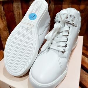 Wedge hightops, lace up with velcro strap. New in the box, never worn! SUPER cute🤩