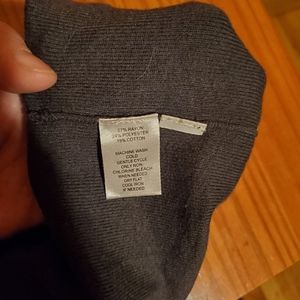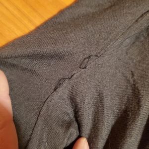 Fitted middle and looser on top. Very flattering drape. Loose thread in armpit but no hole. Security tag cut out.