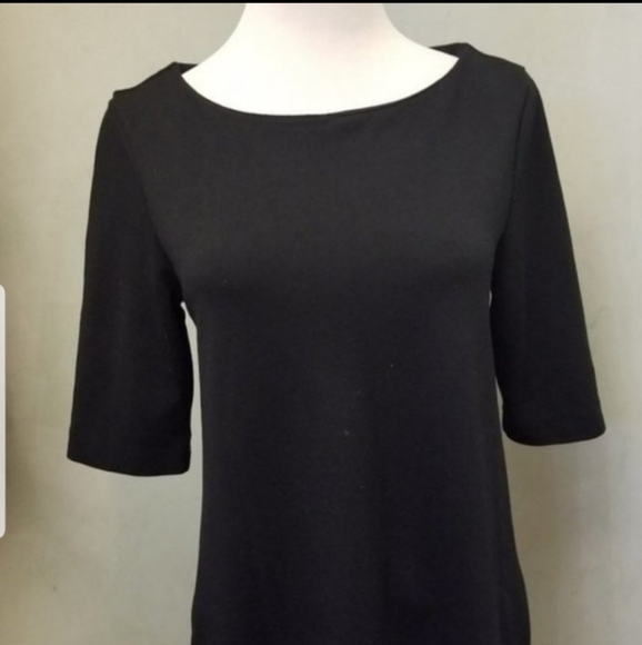 in perfect condition like new Adrienne Vittadini black short sleeve dress with side pockets.