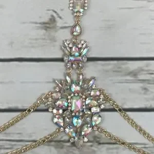 Boho Long Crystal Rhinestone Body Necklace Harness