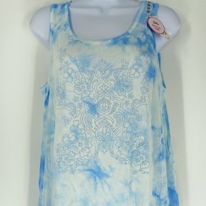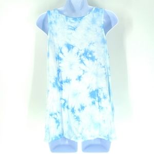 Justice Size 20 Plus Blue White Tie Dye Boho Sparkle Print Loose Swing Tank Top