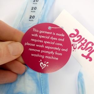 Justice Size 20 Plus Blue White Tie Dye Boho Sparkle Print Loose Swing Tank Top NWT. Graphic Boho design accented with glitter. Flattering on all body shapes as its loose fitting and oh so comfortable. Thanks for shopping 🛍 ❤!
