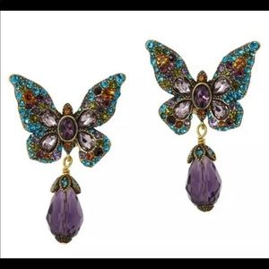 Heidi Daus "Monarch Magic" Butterfly Earrings. Beautiful array of crystal make up these gorgeous omega butterfly earrings with Amethyst teardrops. Measure approximately 1 3/4". New condition.