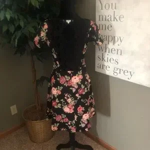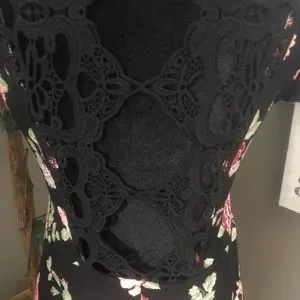 Black Floral Dress with Open Lace Back
