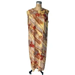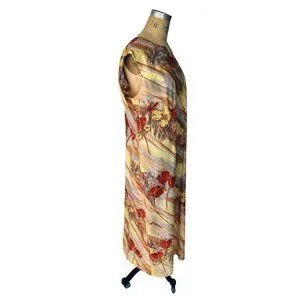 Vintage 70s Abstract Autumnal Sleeveless Dress