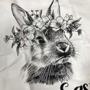 Keep your burrow cute and cuddly this spring with Happy Easter Bunny Pillow Cover. This pillow cover features a black sketch of a bunny wearing a flower crown with coordinating black text and piping. The zipper at the bottom makes it easy to swap out with the seasons. Add a square pillow form inside and hop into Spring.
