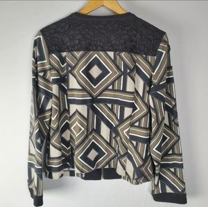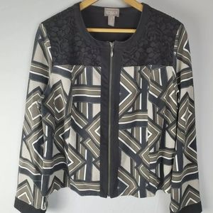 Chicos 2 Blazer Jacket Full Zip Geometric Stretch Lace Black Beige Large